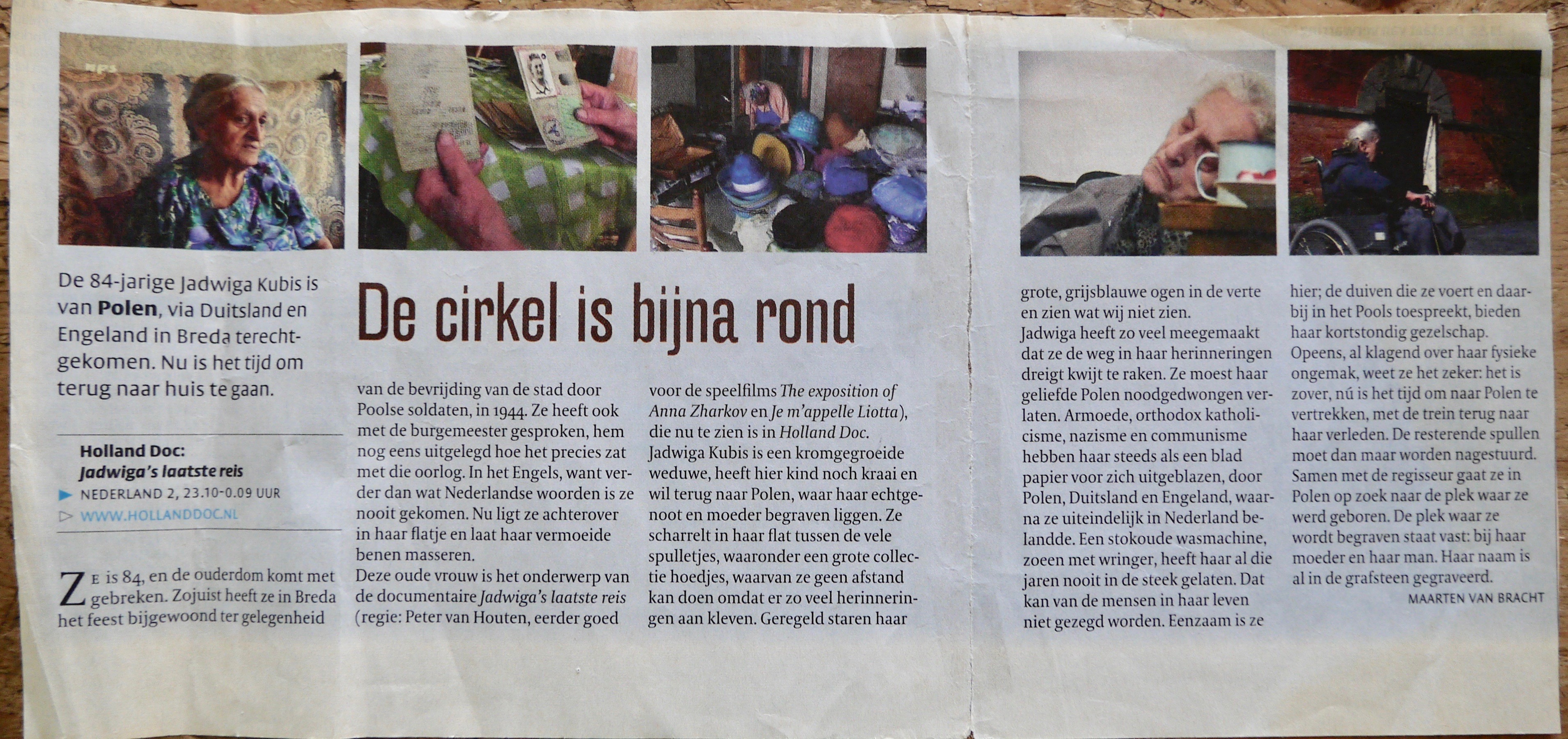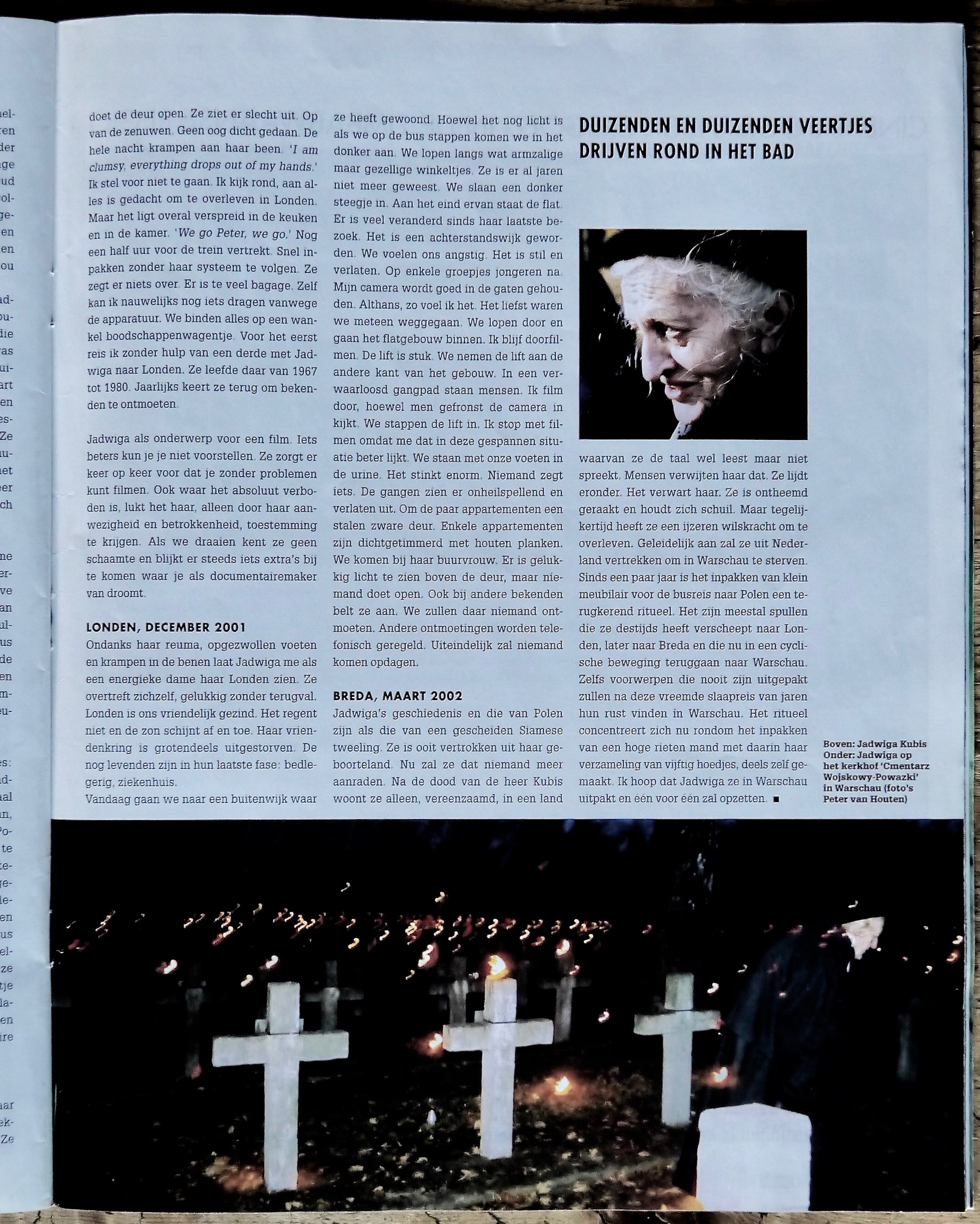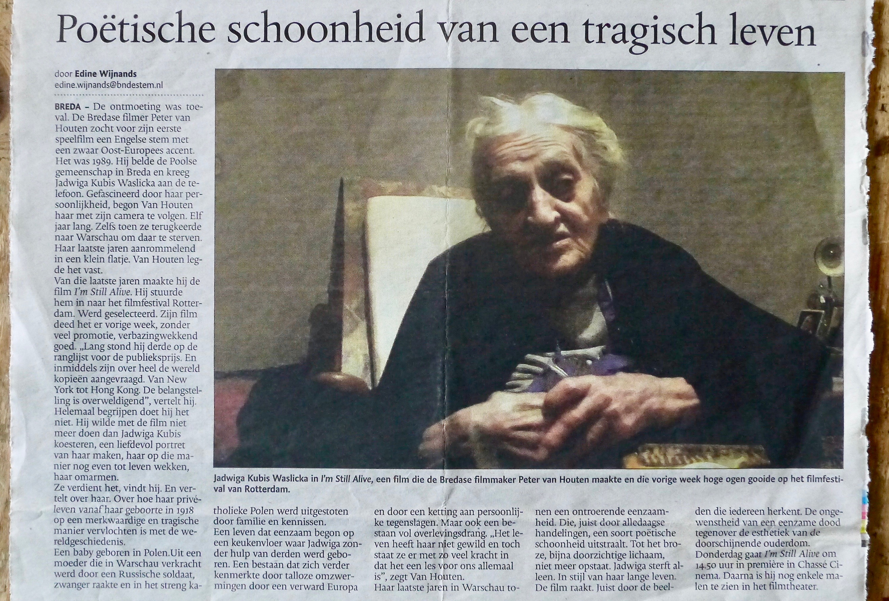 “Van Houten filmt Jadwiga zeer dicht op de huid, en laat je als kijker bijna voelen hoe het is, dat dagelijks leven van de oude dame in haar appartement, steeds slechter ter been maar nooit zielig, want dat is ze absoluut niet.” Lees hier deel 1 en deel 2.